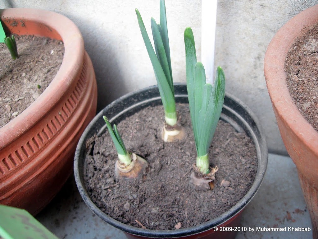 This is the 4th article in this series. Today i will share with you tips for growing flowering bulbs in warm climates – Narcissus. There are many varieties of Narcissus available in lahore in fall. One of them is Grand Soleil which is a fragrant one having yellow flowers, a bit expensive though. The other one is paperwhite which gives pure white flowers and very cheap costing only Rs 10 per bulb. This is the one you are going after as it is very hardy, very tolerant of poor soil and does not care whether planted in sun, semi shade and even full shade. And if that is not all, it does not mind drought as well. So for a careless gardener, it is a perfect bulb to try. I have heard that they are easy be forced as well but i could not try it this year.